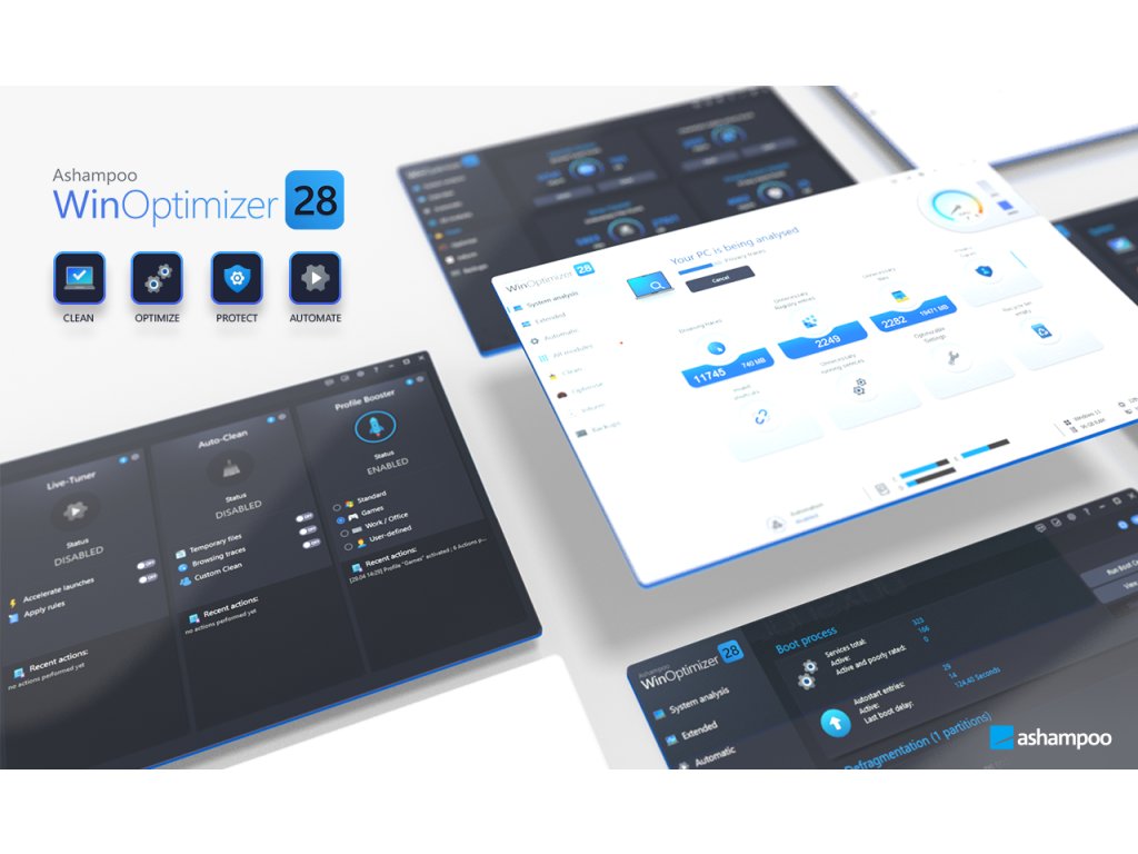 Ashampoo WinOptimizer 28 prináša komplexné riešenie pre údržbu, ochranu a optimalizáciu vášho Windows PC. Navrhnutý tak, aby zefektívnil systémové procesy, odstránil nežiaduce súbory a posilnil bezpečnosť, ponúka vynovené nástroje a zrýchlené moduly. Ashampoo