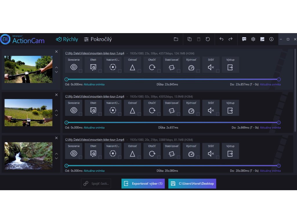 Ashampoo ActionCam je určený na rýchlu a jednoduchú úpravu videí z akčných kamier. - Ako stabilizovať trasúce sa video zo športovej kamery?