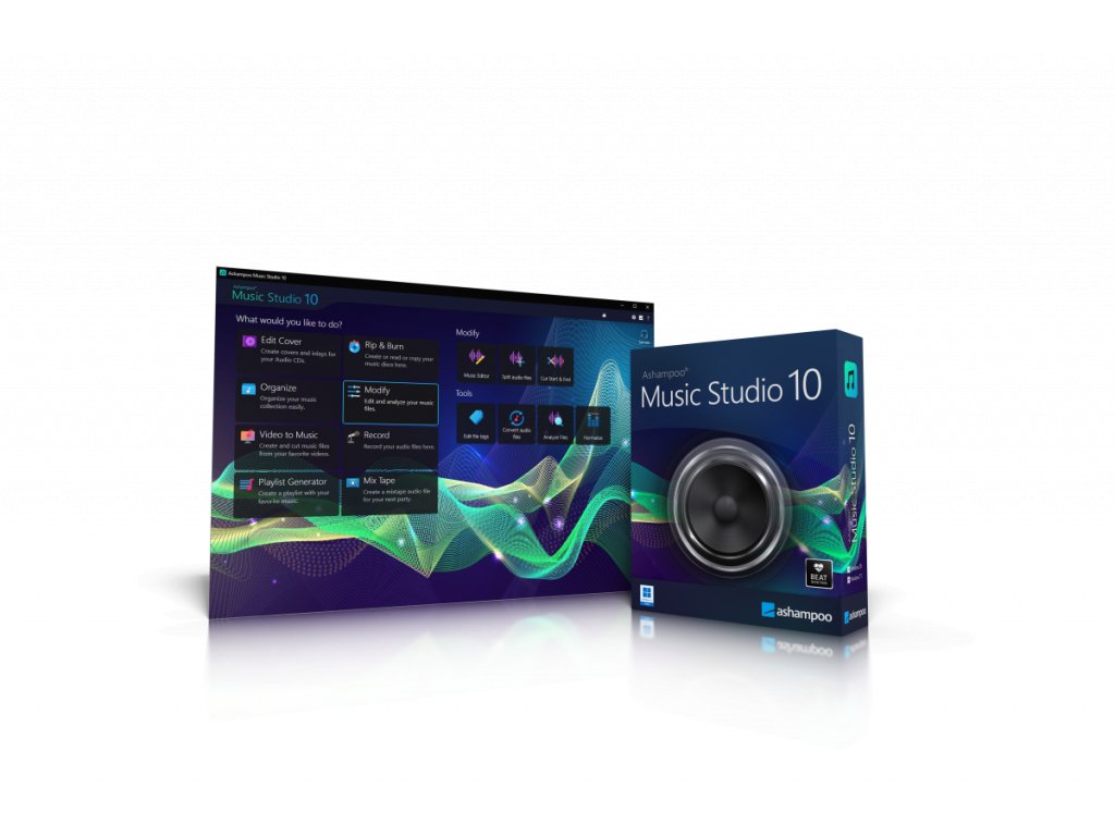 Produkt Music Studio 10 je komplexné riešenie na úpravu a organizáciu hudby. Program obsahuje osem modulov na nahrávanie, strihanie, konvertovanie a napaľovanie zvukových súborov. Vďaka rýchlemu ripovaniu sú názvy skladieb a obaly automaticky doplnené a celý proces si vyžaduje len minimálny manuálny vstup. Plne prispôsobiteľné schémy pomenovania umožňujú Ashampoo Music Studio 10 priniesť poriadok do hudobných zbierok premenovaním a usporiadaním do priečinkov. Hudobníci a DJi ocenia rôzne spôsoby, ako vytvárať, mixovať, orezávať a strihať hudbu. Súbory je možné ľahko konvertovať, zdieľať, analyzovať a normalizovať. Zabudovaný audio editor podporuje až tri zvukové stopy, čo uľahčuje spracovanie piesní aj audiokníh. Prostredníctvom integrovaného editora obalov je k dispozícii množstvo šablón a prispôsobiteľných dizajnových možností, ktoré ponúkajú rýchlu a jednoduchú cestu k navrhovaniu individuálnych obalov a vložiek. Samozrejme, program tiež nahráva zvuk z mikrofónov a dokonca podporuje funkciu „Čo počujete“ na nahrávanie všetkého, čo používatelia počujú na svojom PC. DJ Mix Tape premení skladby na harmonické mixtapy s plynulými prechodmi založenými na analýze rýchlosti. Verzia 10 podporuje prehrávanie slučiek na základe regiónov v editore na neustále monitorovanie, presúvateľné titulné lišty pre ľahšie preusporiadanie skladieb a nové kontextové menu na okamžitý prístup k funkciám. Skladby teraz podporujú viacero obrázkov a až 18 meta tagov na každú. Pre lepšiu prehľadnosť a jednoduchosť používania sú funkcie v editore zoskupené a používatelia teraz dostávajú užitočnú vizuálnu spätnú väzbu počas preusporiadania skladieb. Nakoniec, výkon aplikácie bol vylepšený, aby Ashampoo Music Studio 10 fungovalo hladko aj na starších počítačoch.