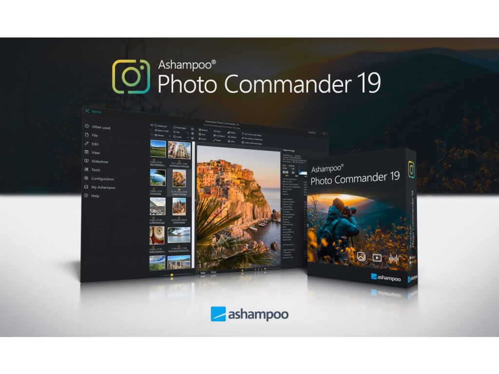 Ashampoo Photo Commander 19 je komplexné softvérové riešenie na prezeranie, úpravu a organizovanie digitálnych fotografií. Inteligentné filtre a možnosti zoskupenia pomáhajú používateľom udržať si prehľad, bez ohľadu na to, aké veľké sú ich foto zbierky. Program podporuje geotagging na triedenie fotografií podľa miesta a dokáže vizualizovať polohy na mape. Prehliadač obrázkov v Ashampoo Photo Commander ponúka plynulé prechody a je ideálny pre prostredia s viacerými obrazovkami s vysokým rozlíšením 4K. Funkcie zahŕňajú automatickú optimalizáciu obrázkov, manuálne efekty a rôzne nástroje na obnovu vyblednutých obrázkov, odstránenie škrabancov, opravu červených očí a elimináciu digitálneho šumu. Integrované hromadné spracovanie je ideálne pre veľké množstvo obrázkov a podporuje konverziu aj bežné úpravy obrázkov. Používatelia môžu tiež vytvárať individuálne koláže, kalendáre a pohľadnice na základe množstva zahrnutých šablón a rámčekov pre rýchle výsledky. Vytváranie prezentácií s plynulými prechodmi a podkladovou hudbou je rovnako jednoduché. Ashampoo Photo Commander 18 je plne kompatibilný so systémom Windows 11 a je prvým Photo Commanderom s natívnou podporou 64-bitovej architektúry.