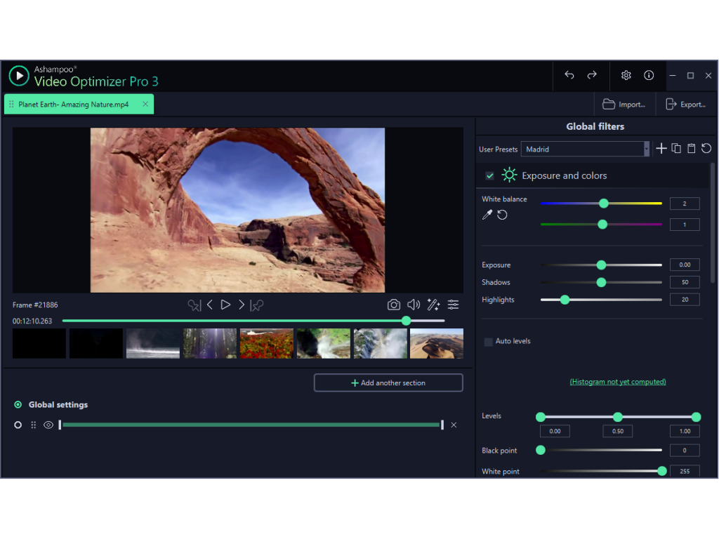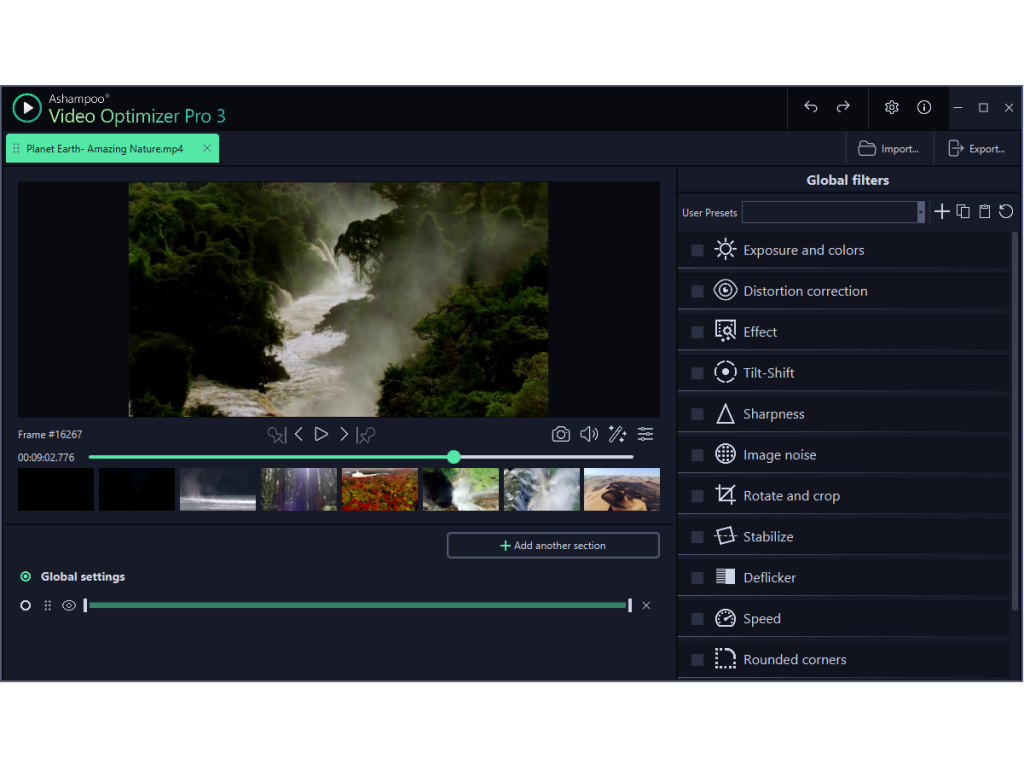 Ashampoo Video Optimizer Pro 3 je softvér na úpravu a optimalizáciu videí od nemeckej spoločnosti Ashampoo určený pre domácich používateľov, tvorcov obsahu a vlastníkov akčných kamier pracujúcich na Windows 10 alebo 11. Rieši typické problémy amatérskeho a poloprofesionálneho záznamu – roztrasený obraz z mobilu či akčnej kamery, tmavé scény s digitálnym šumom, skreslenie objektívu a nevyvážené farby. Licencia je doživotná pre jedno zariadenie a produkt sa dodáva ako digitálne stiahnutie s aktiváciou online.