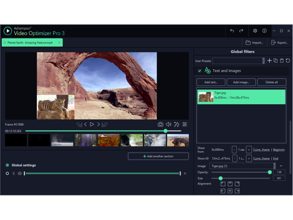 - Textové a obrázkové prekrytia — Vloženie popiskov, titulkov a klipartov s voľným umiestnením a časovaním.
