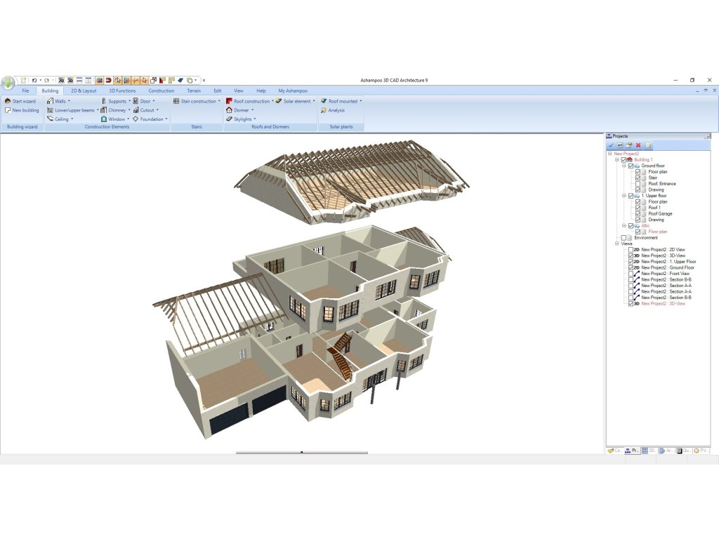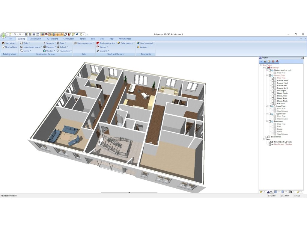 Ashampoo 3D CAD Architecture 12 je komplexný softvér určený pre návrh architektúry, interiérov a rekonštrukčných projektov — vhodný pre domácich používateľov aj profesionálov. Používateľ je vedený krok za krokom pomocou asistenta projektu, ktorý zjednodušuje všetky nastavenia aj pre začiatočníkov. Rozhranie je prehľadné a logické, čo uľahčuje orientáciu a prácu.