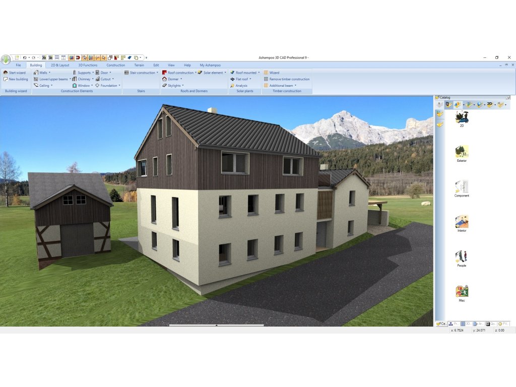 Produkt Ashampoo 3D CAD Professional 12 je profesionálny kresliaci program pre dizajnérov, návrhárov, interiérových a krajinných architektov. Program úplne pokrýva plánovanie, vizualizáciu a výpočet projektov bez potreby ďalšieho softvéru. S prehľadným, tematicky organizovaným rozhraním je každá funkcia vzdialená len na jeden klik myšou. Ovládanie je logicky usporiadané a ľahko prístupné. Vďaka importu objektov SketchUp a Collada je k dispozícii milióny ďalších objektov na plánovanie aj vysoko individuálnych projektov a stavieb do najmenších detailov. Fotovoltaické funkcie umožňujú podrobné plánovanie strešných a plochých fotovoltaických systémov, zatiaľ čo návrh celých fasád je výrazne zjednodušený pomocou mriežkových prvkov. Tieto plány sa dajú jednoducho exportovať ako PDF, RTF alebo Excel súbory pre presné výpočty nákladov vrátane prípravy cenových ponúk. 2D DXF a DWG súbory je možné importovať a exportovať priamo z programu. Vo verzii 12 je rozšírený katalóg o viac ako 250 nových 3D objektov, nové dvere, katalóg balkónov ako skupiny a oporné múry pre plánovanie terénu a záhrad. Zábradlia je možné používať v mnohých variáciách a automatické rozmerovanie pre 2D pôdorysy a automatické pozičné texty na označenie stien a okien výrazne uľahčujú prácu. Nové funkcie, ako sú terénne prvky so 3D hranicami, ploty ako zábradlia a praktický dialóg so severnou šípkou na umiestnenie, otáčanie a škálovanie, poskytujú ešte väčšiu jednoduchosť použitia a flexibilitu.